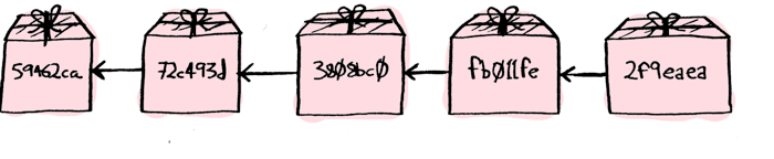 Each commit has a SHA1 hash that you can use to reference the commit. And each commit points to its parent: